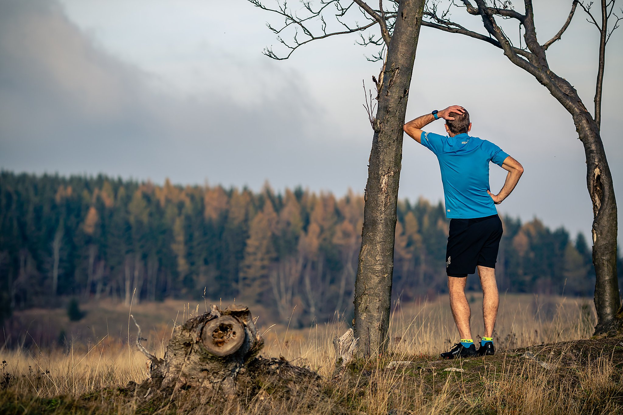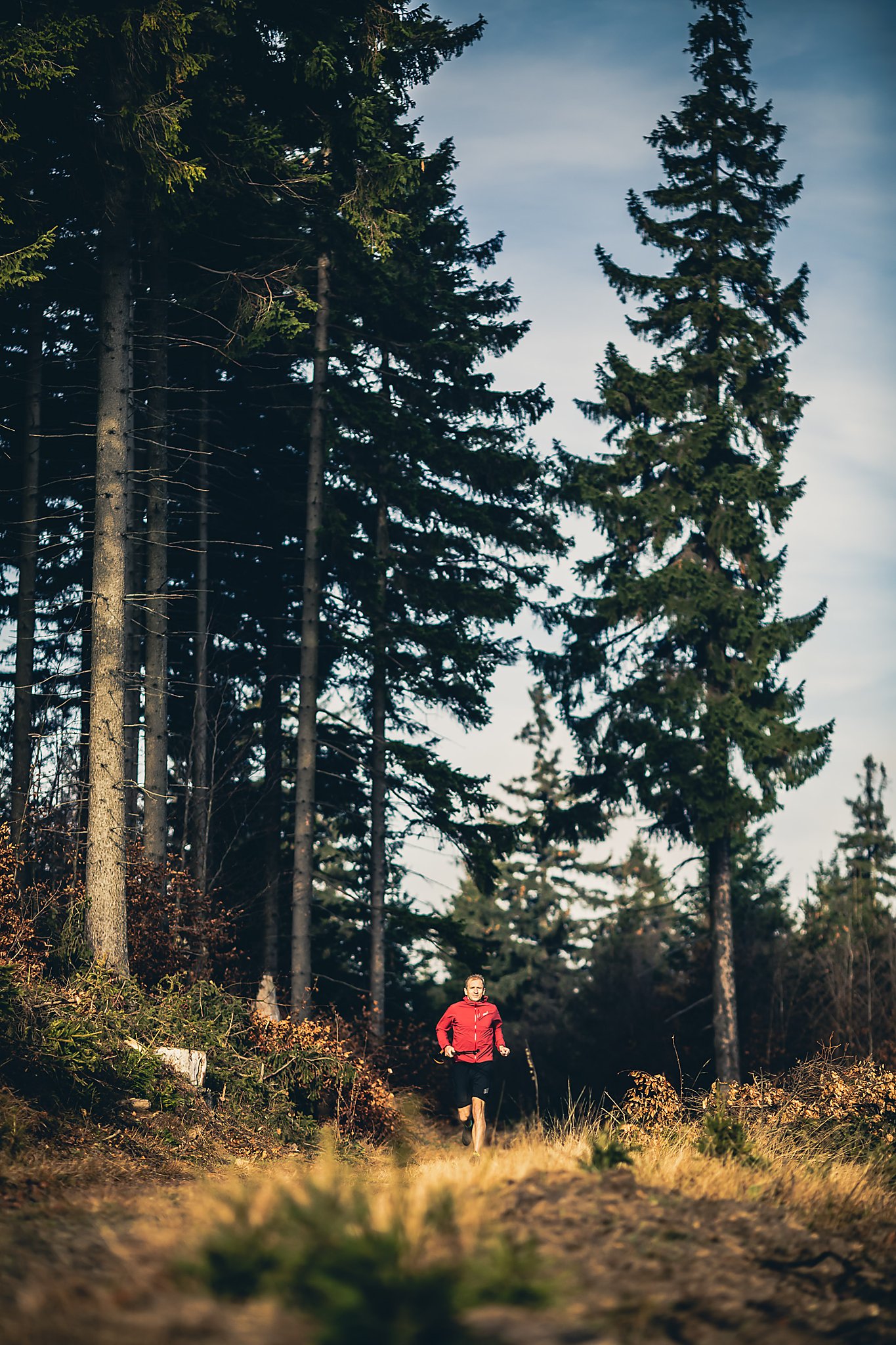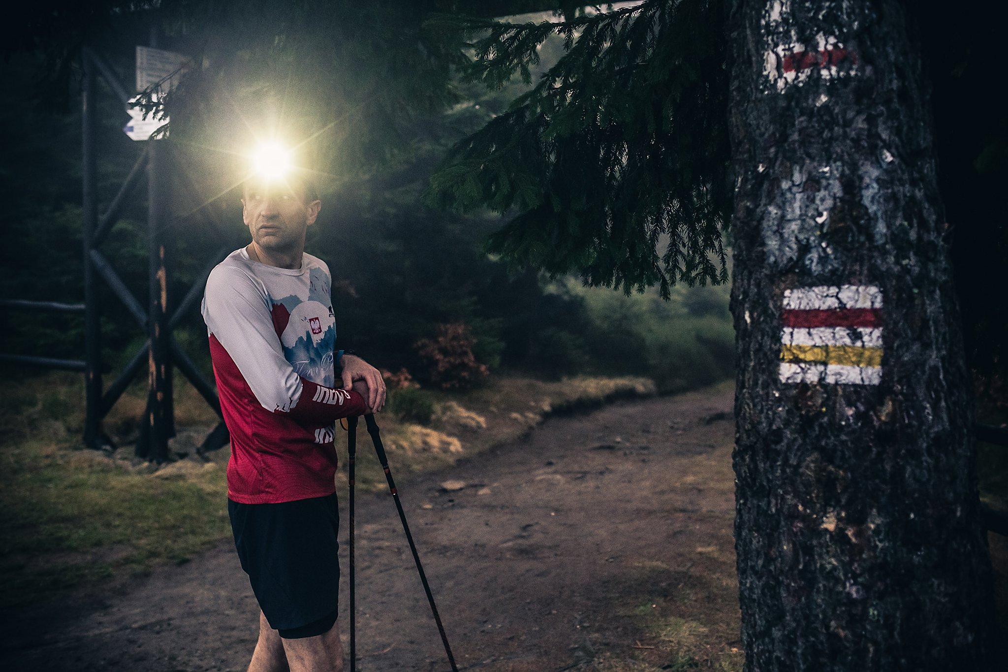 Rafał Bielawa - biegacz ultra, rekordzista Głównego Szlaku Beskidzkiego. Zdjęcia wykonane podczas treningu na Wielkiej Sowie w Górach Sowich.