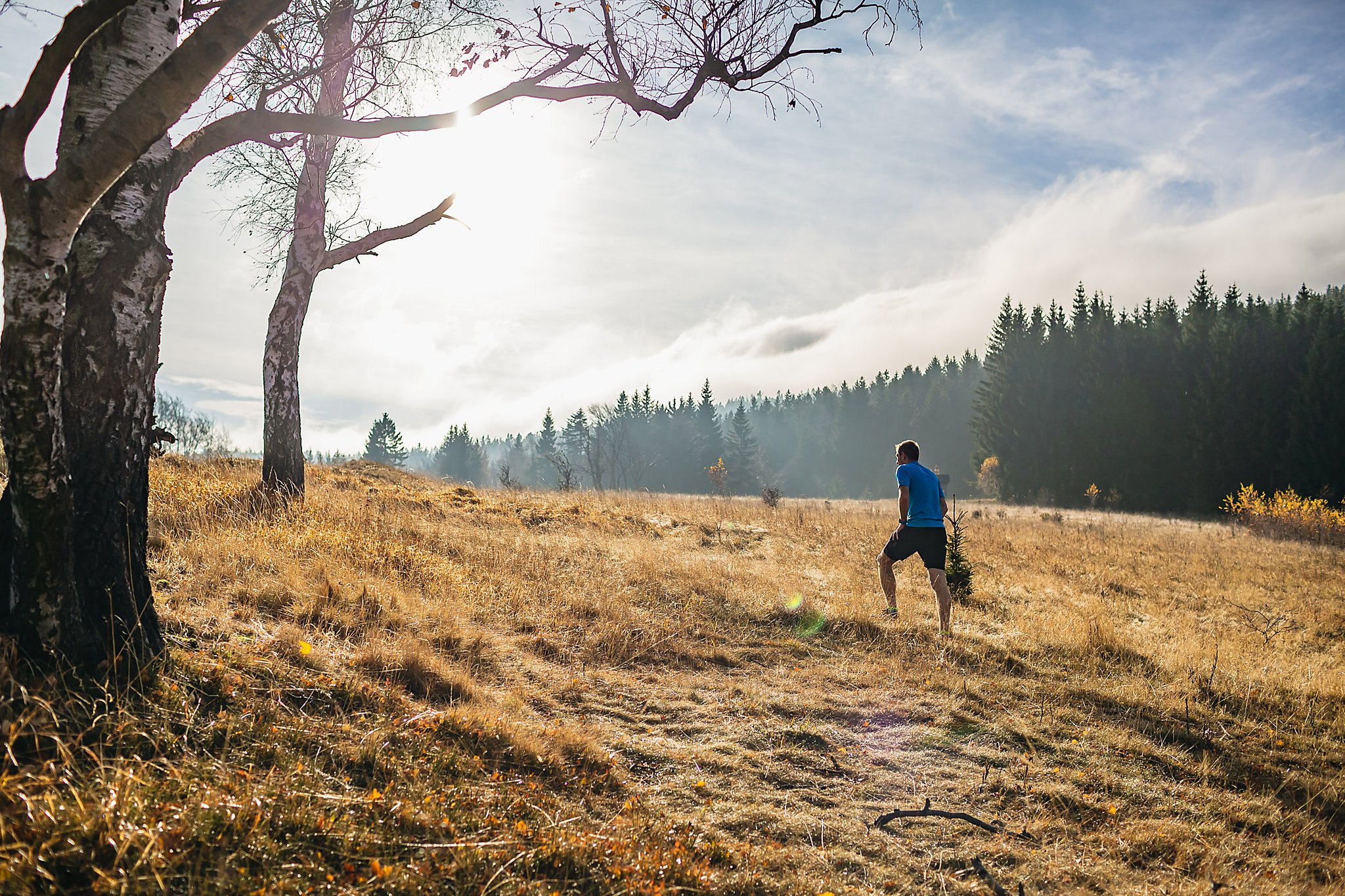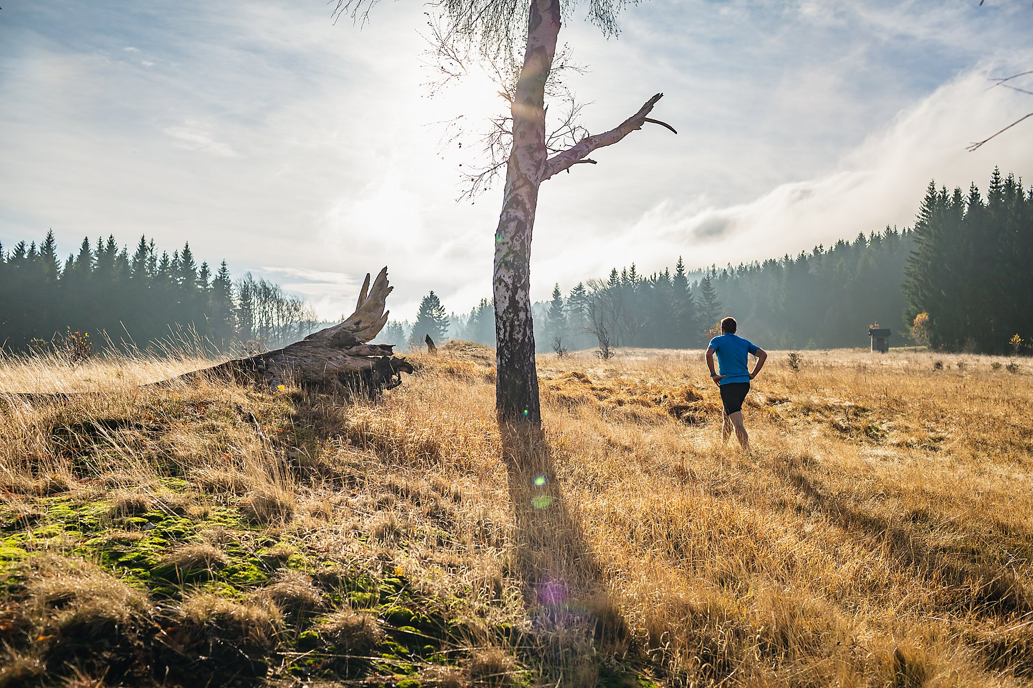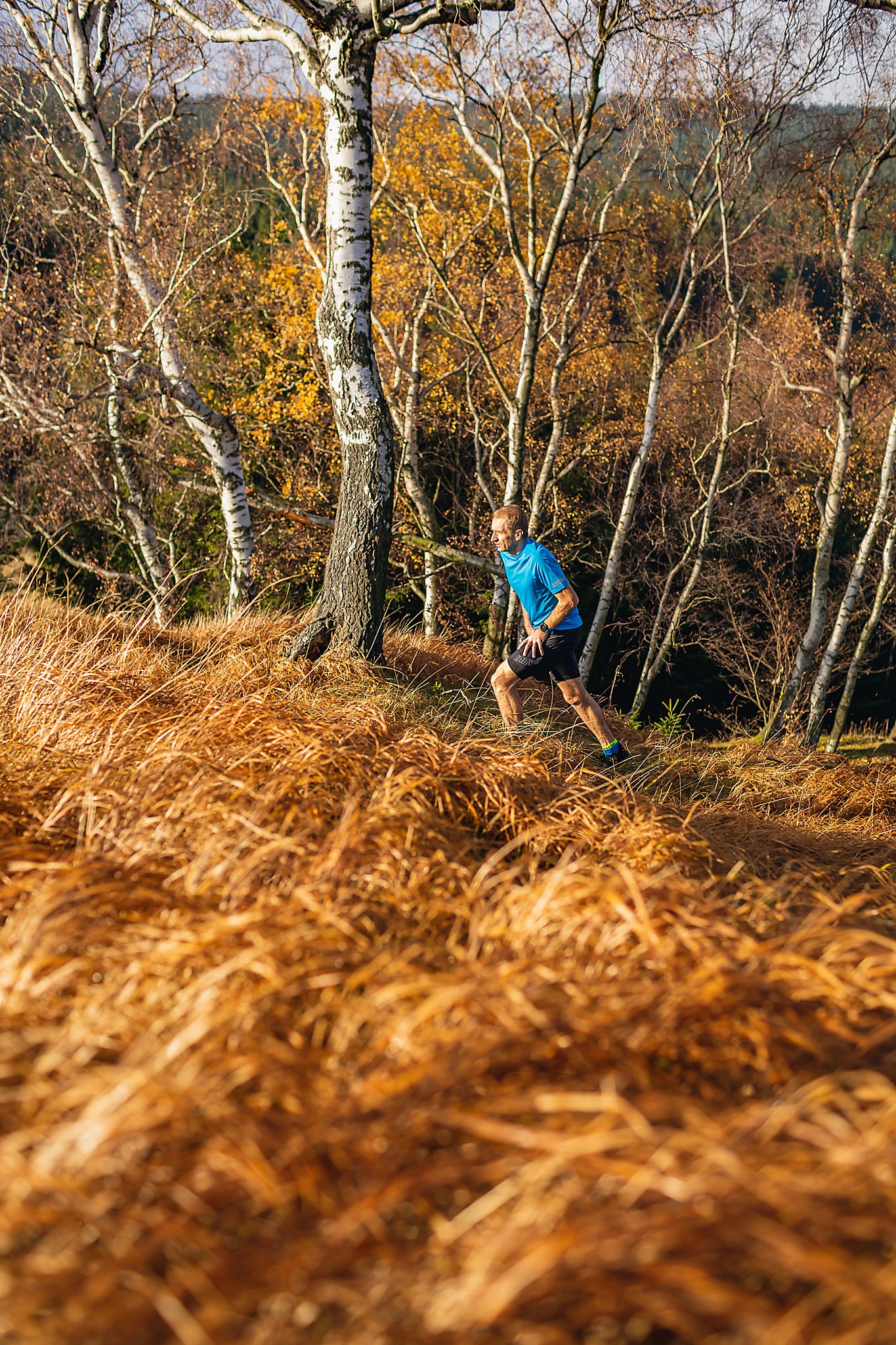 Rafał Bielawa - biegacz ultra, rekordzista Głównego Szlaku Beskidzkiego. Zdjęcia wykonane podczas treningu na Wielkiej Sowie w Górach Sowich.