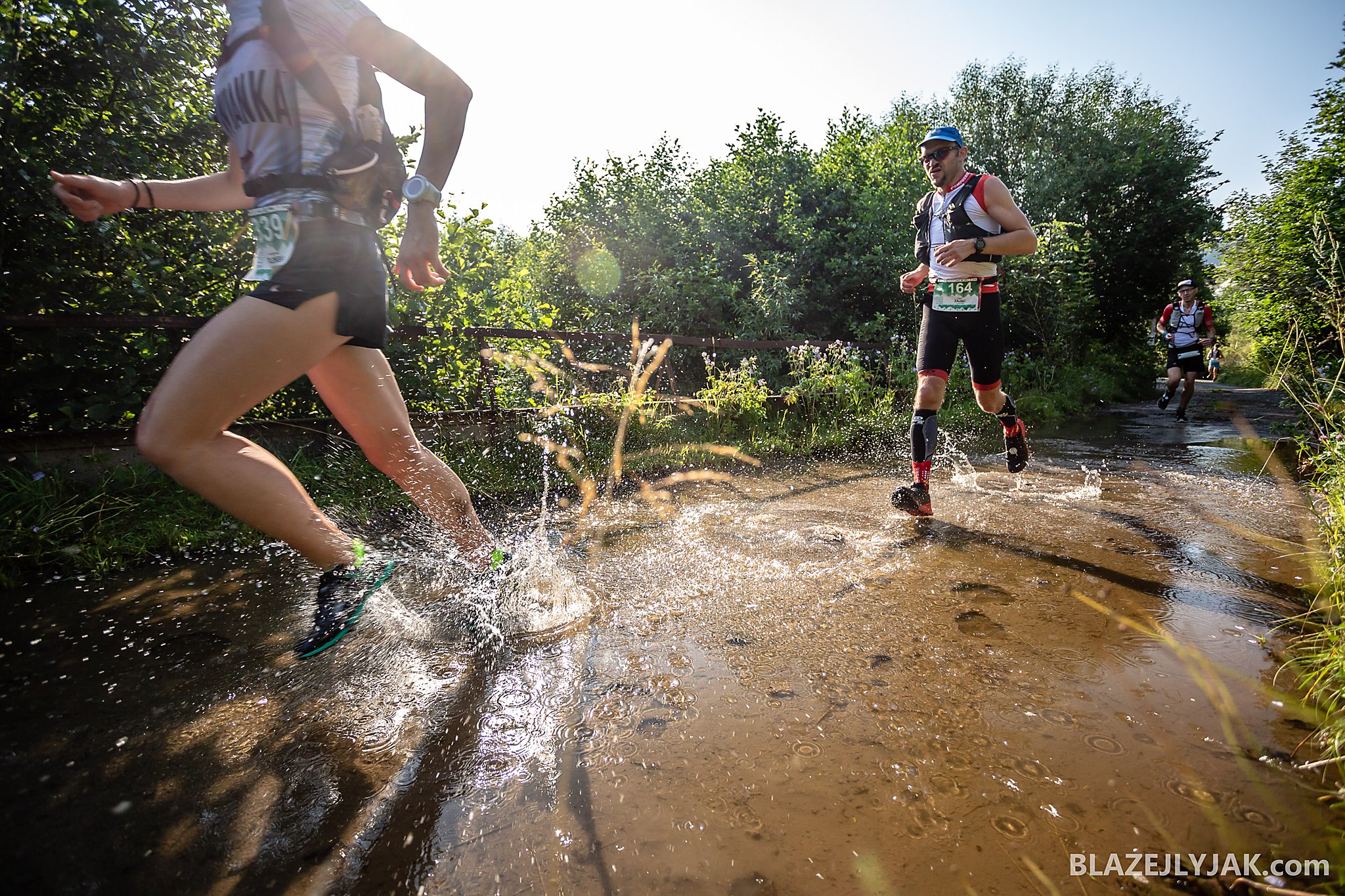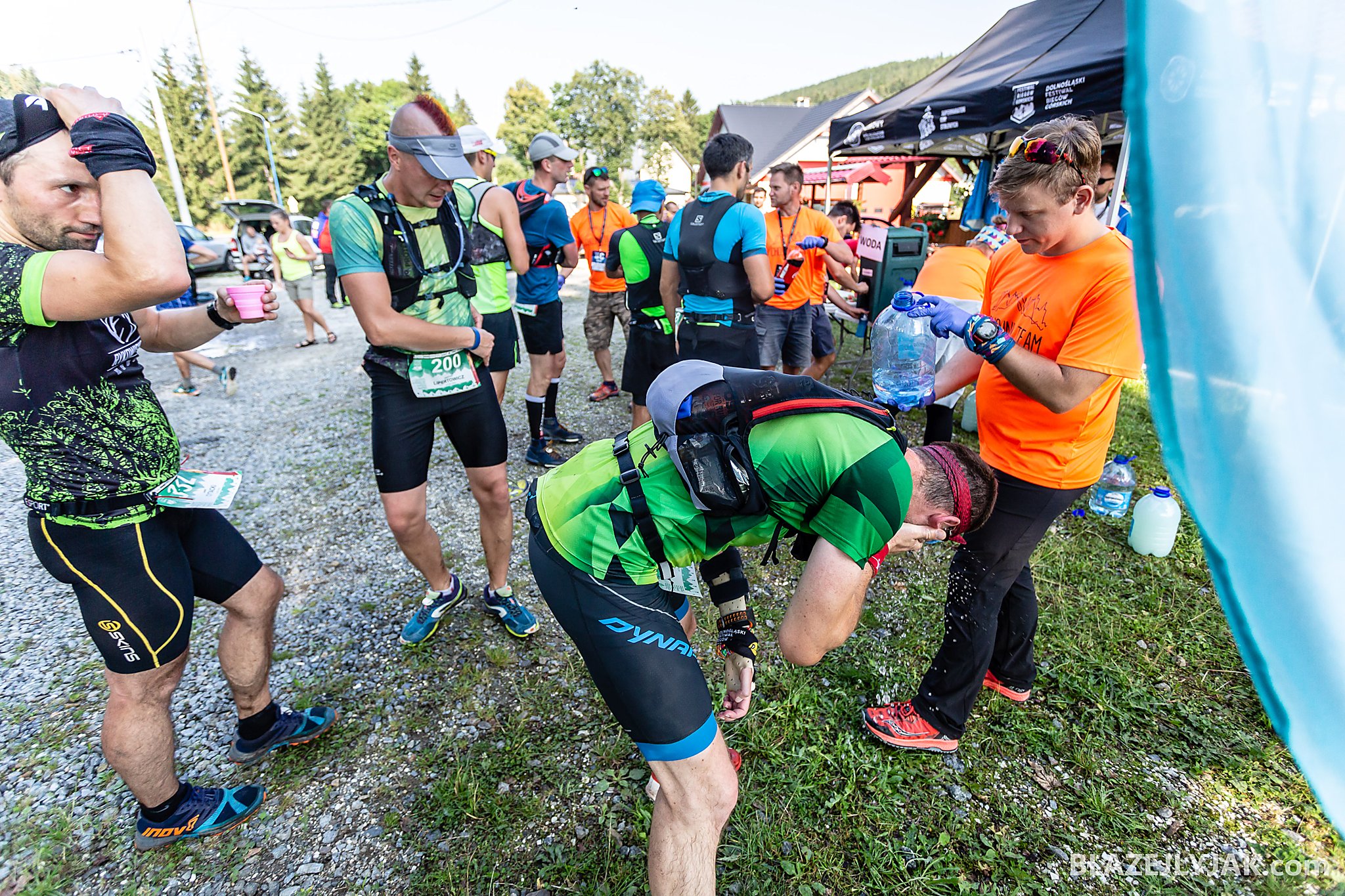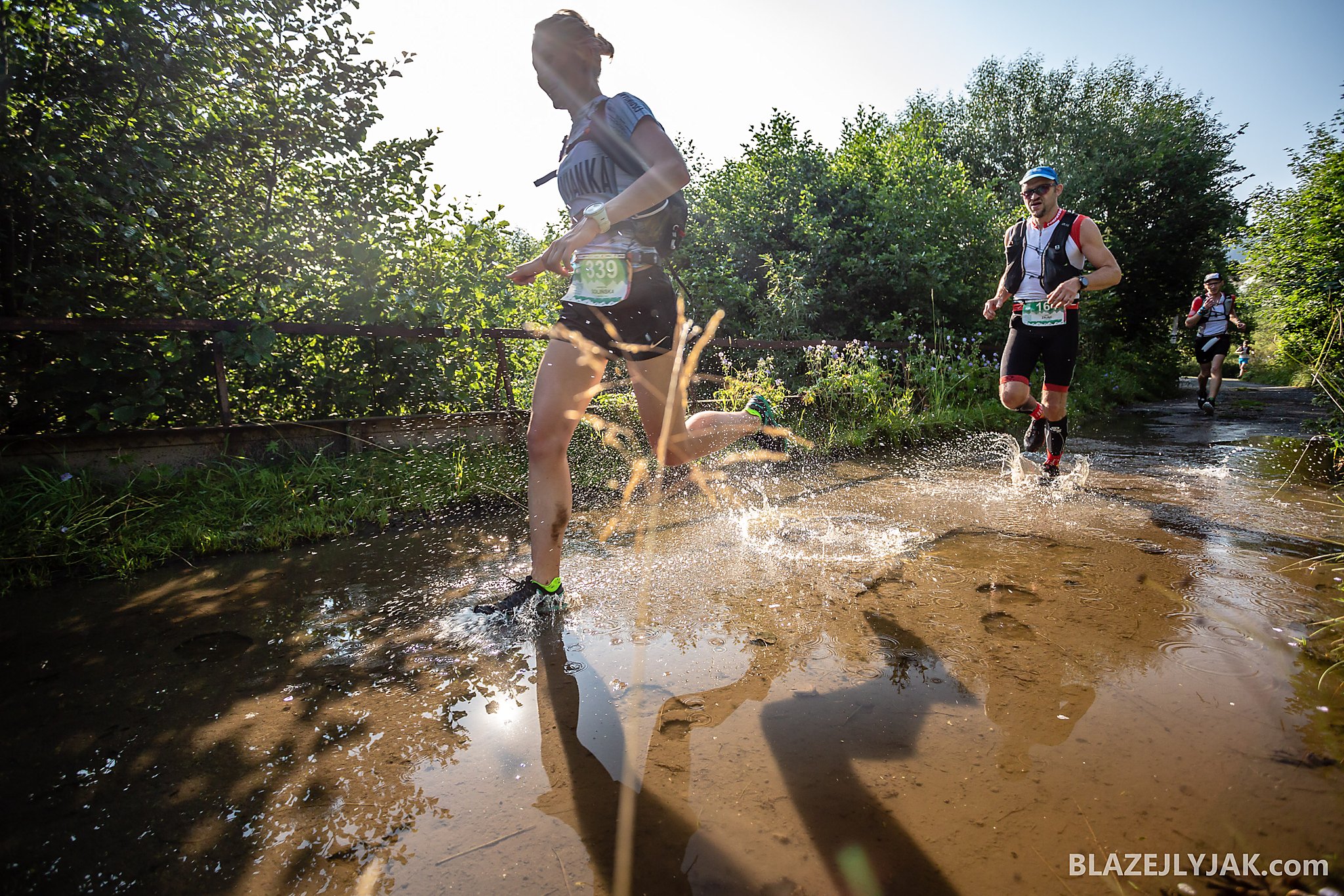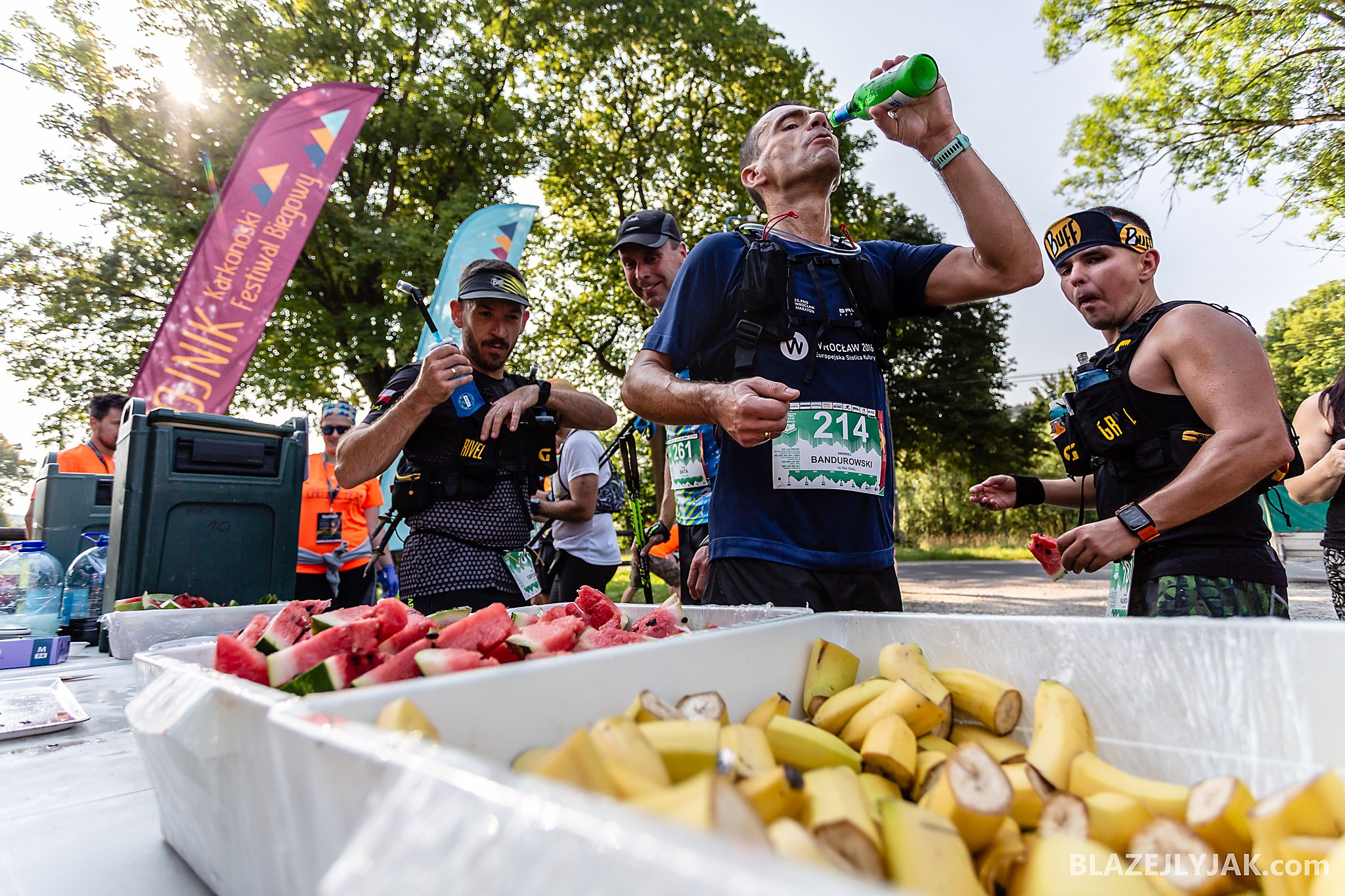 Dolnośląski Festiwal Biegów Górskich w Lądku-Zdroju, edycja 2018. Biegacze na trasie Ultra Trail o dystansie 65 kilometrów zmagający się z trudami sudeckich szlaków w upalny, lipcowy dzień.