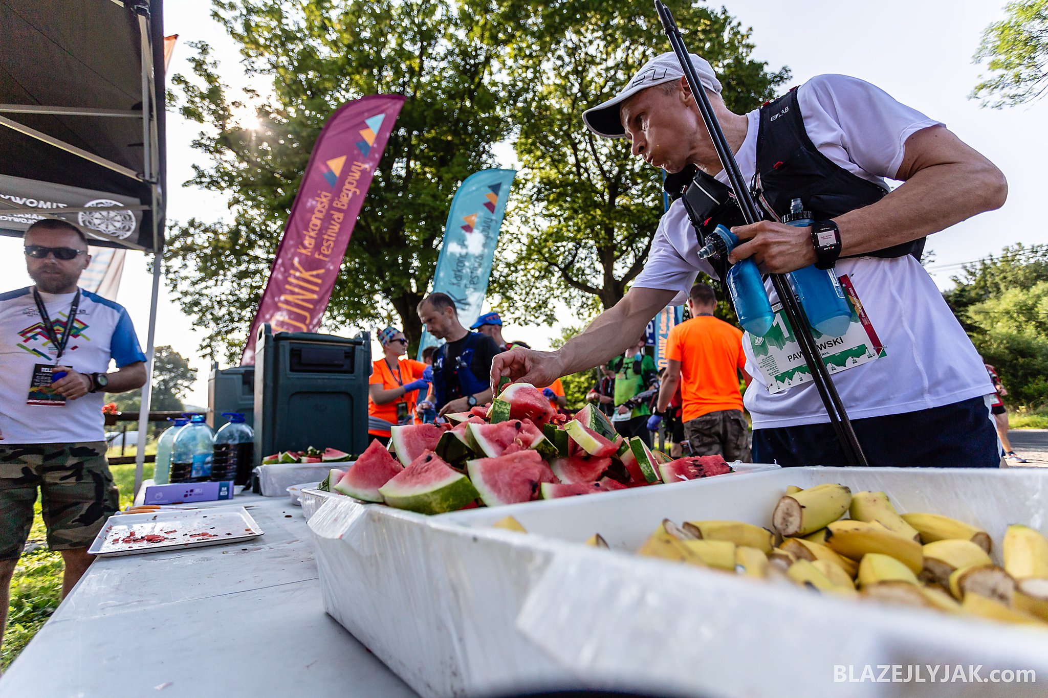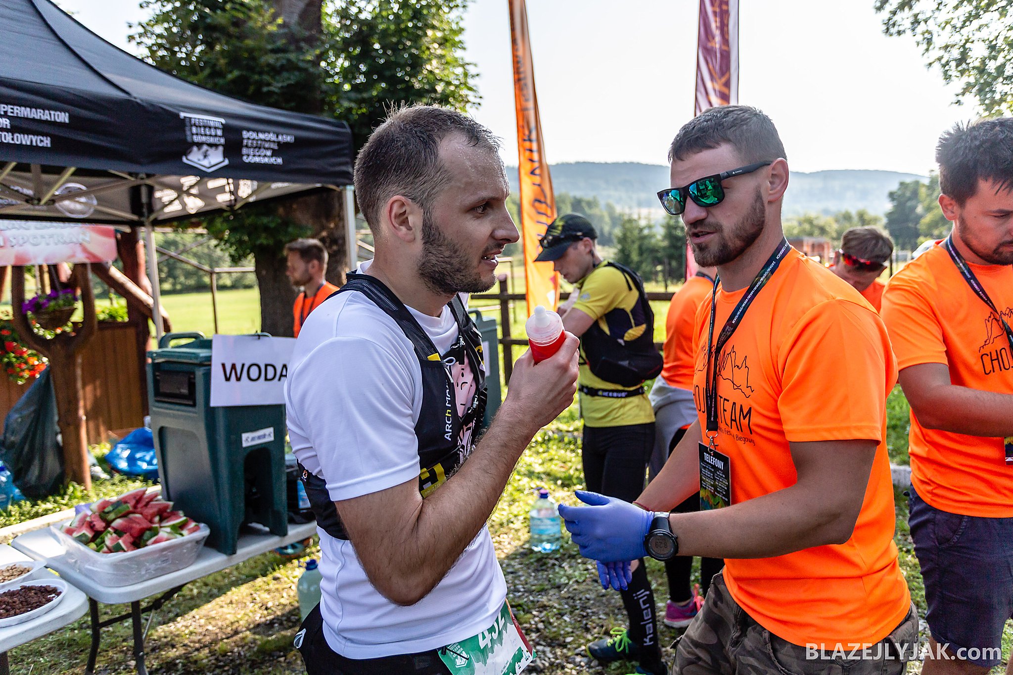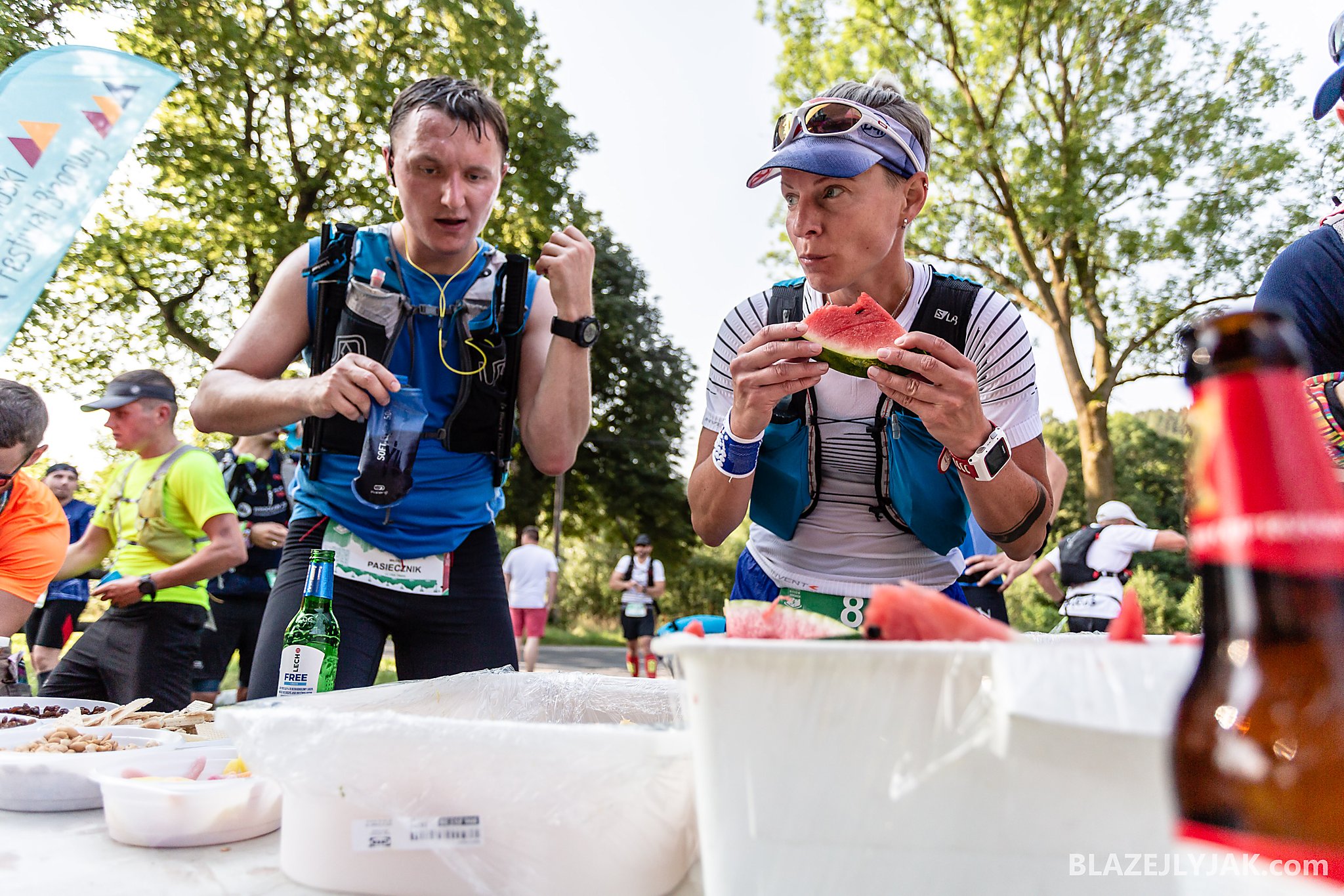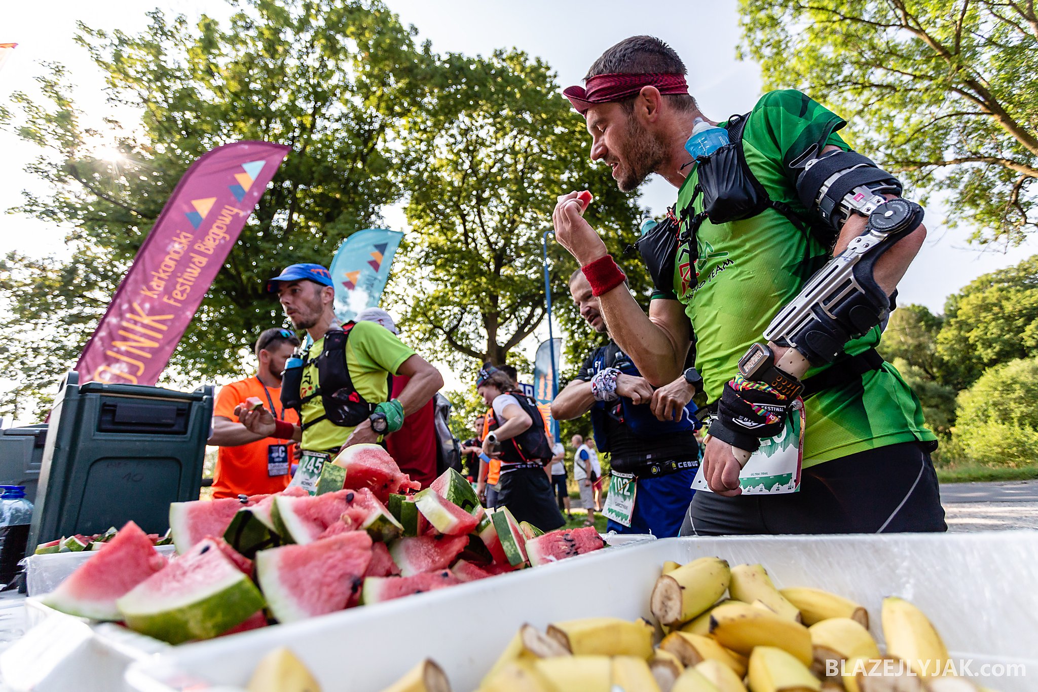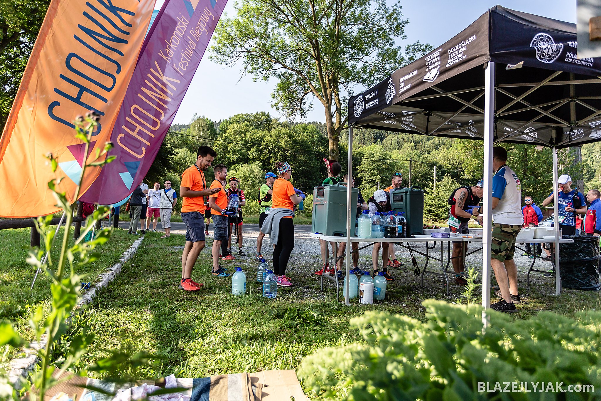 Dolnośląski Festiwal Biegów Górskich w Lądku-Zdroju, edycja 2018. Biegacze na trasie Ultra Trail o dystansie 65 kilometrów zmagający się z trudami sudeckich szlaków w upalny, lipcowy dzień.