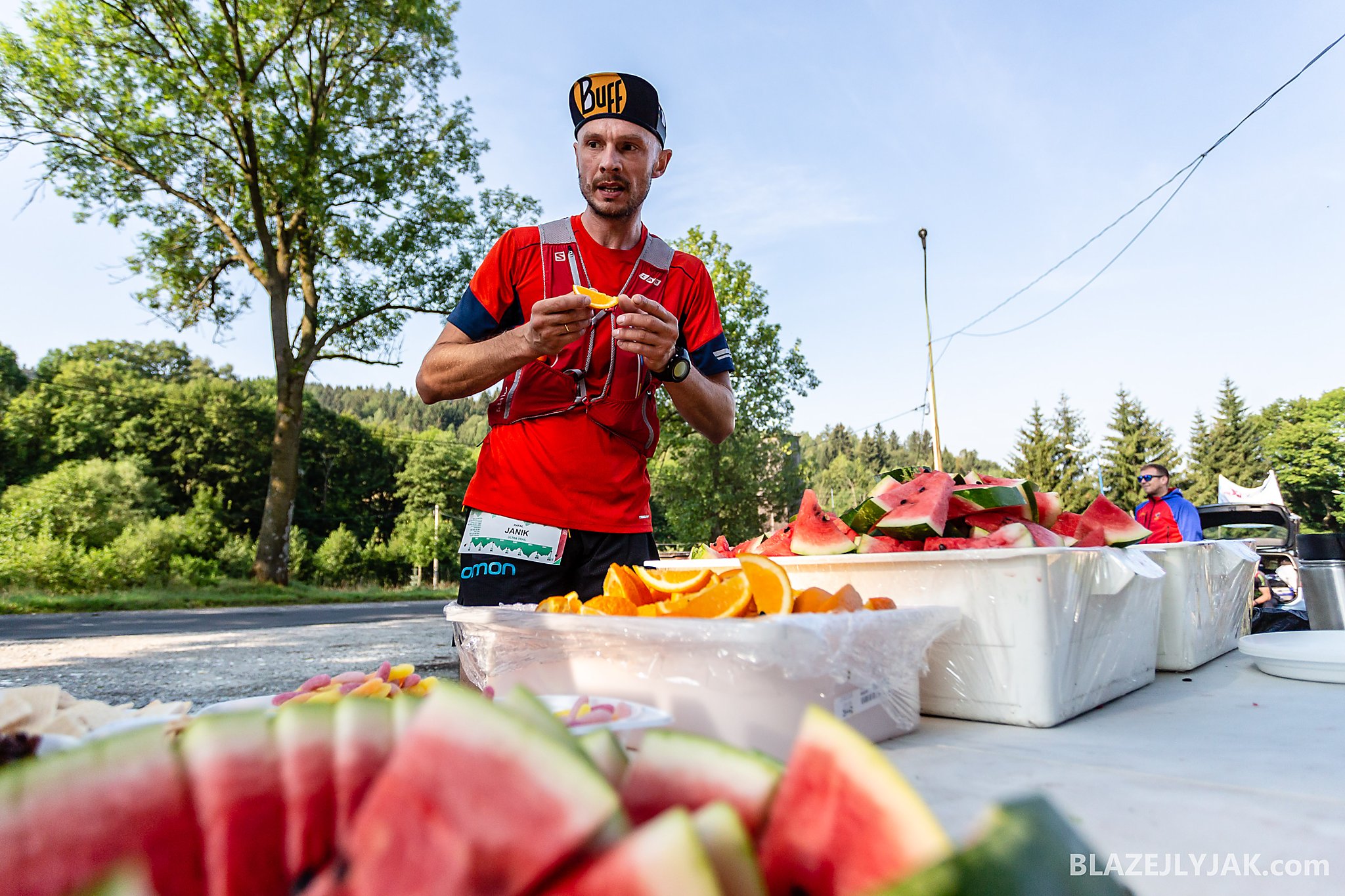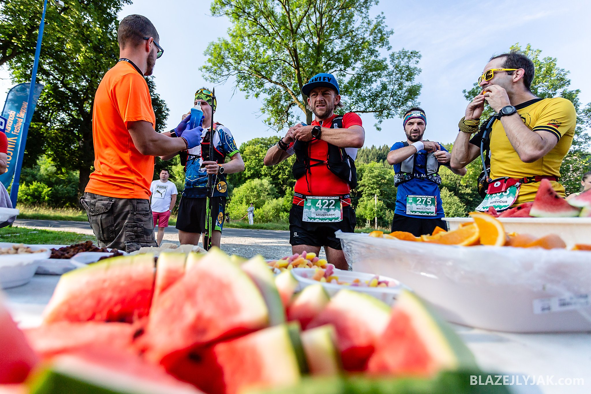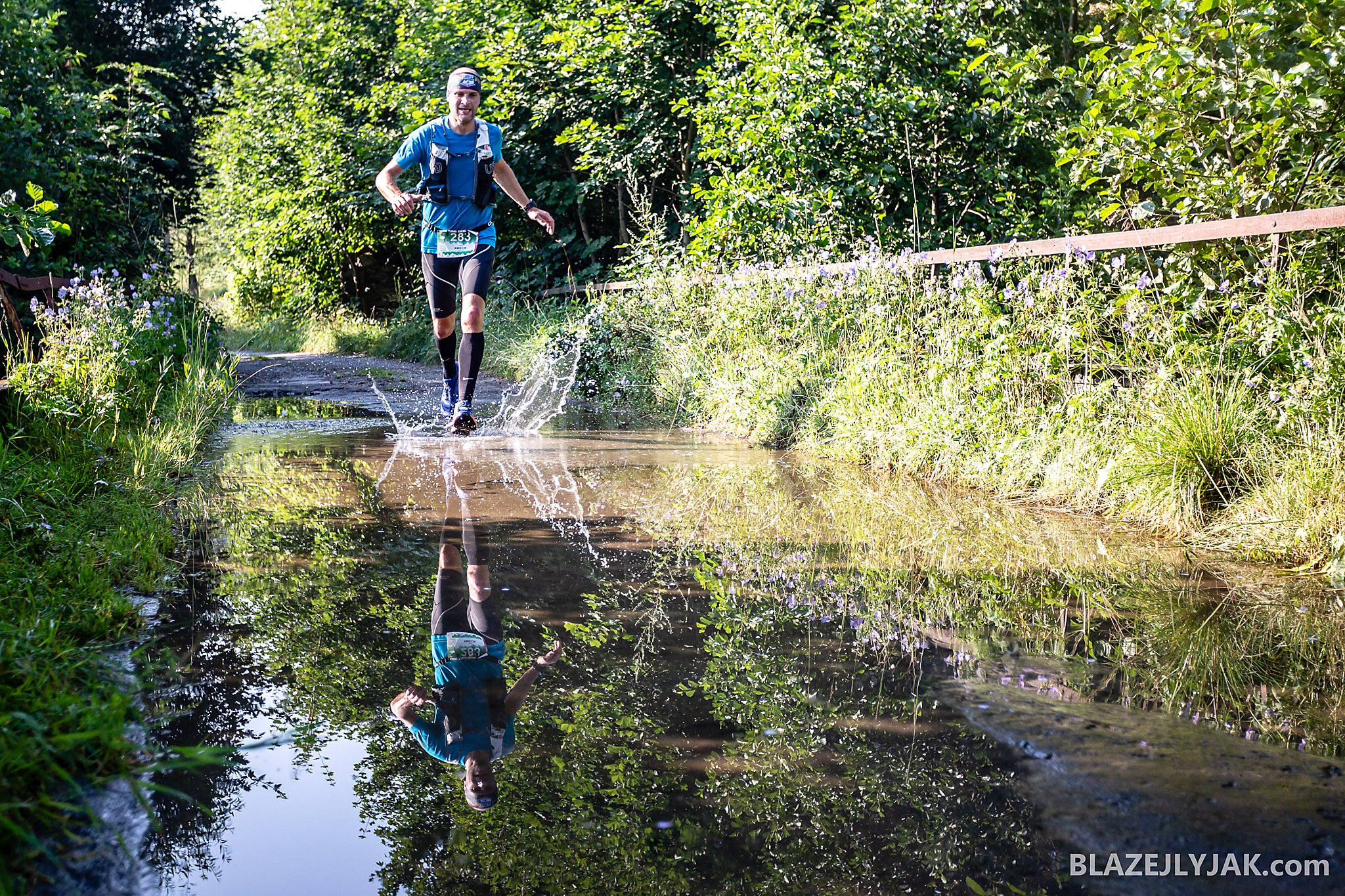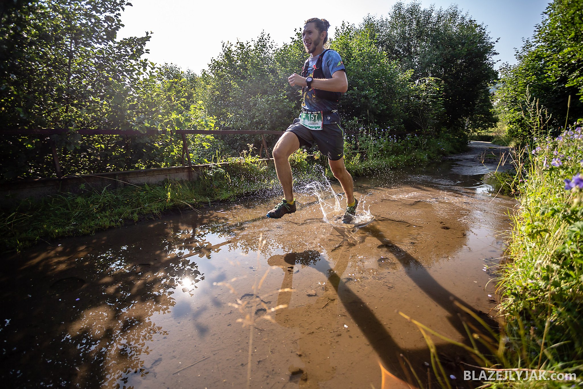 Dolnośląski Festiwal Biegów Górskich w Lądku-Zdroju, edycja 2018. Biegacze na trasie Ultra Trail o dystansie 65 kilometrów zmagający się z trudami sudeckich szlaków w upalny, lipcowy dzień.