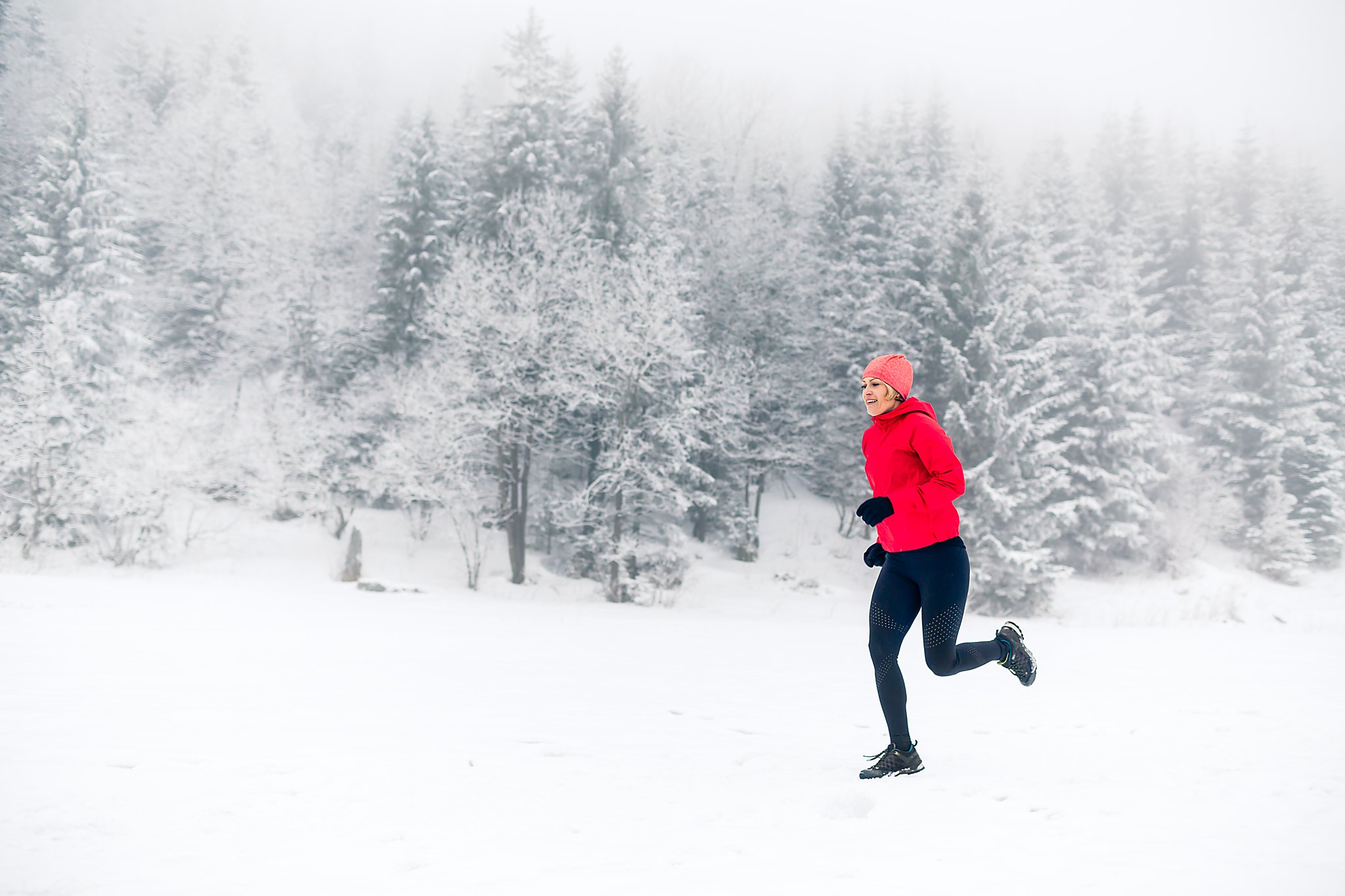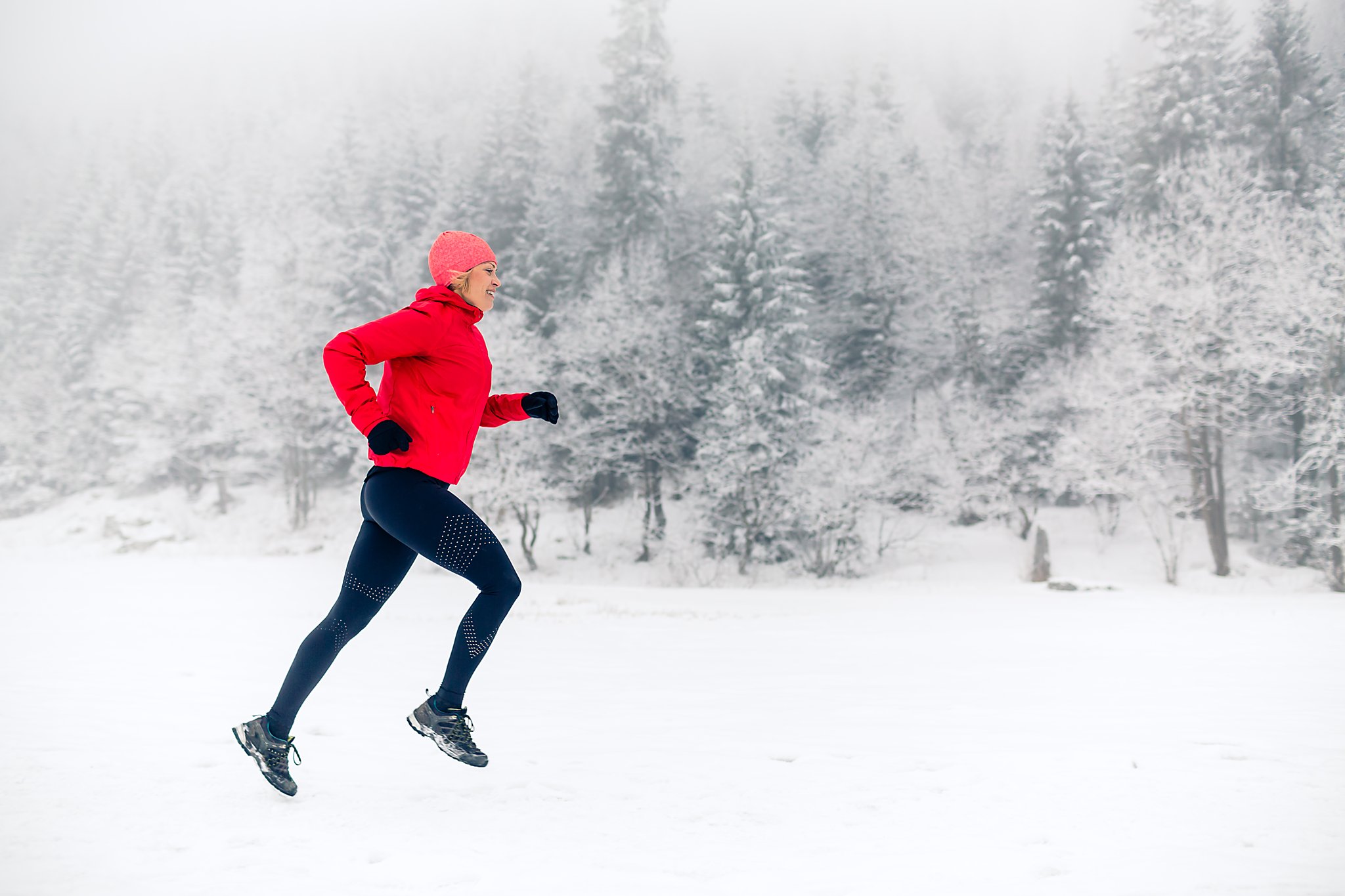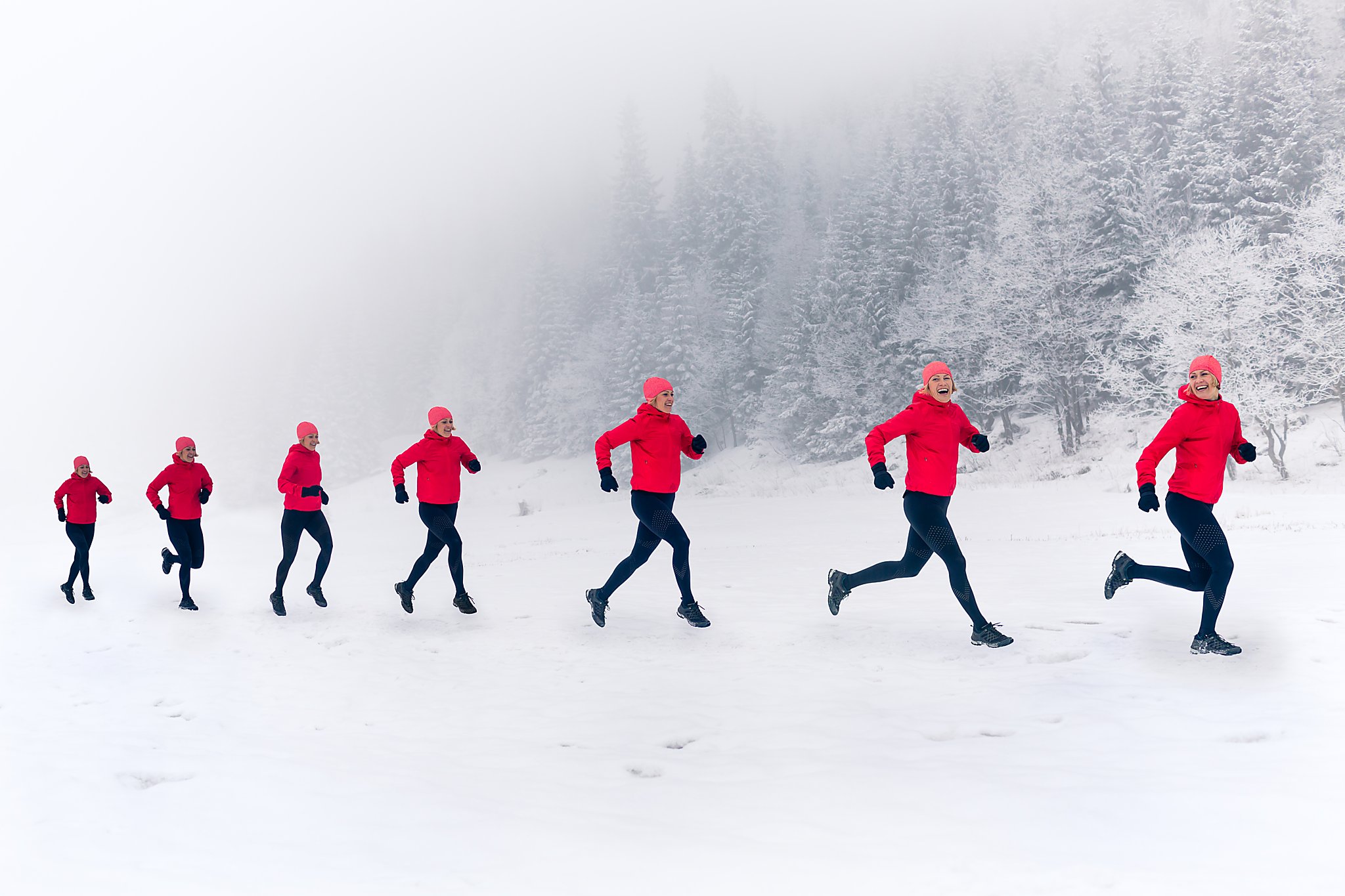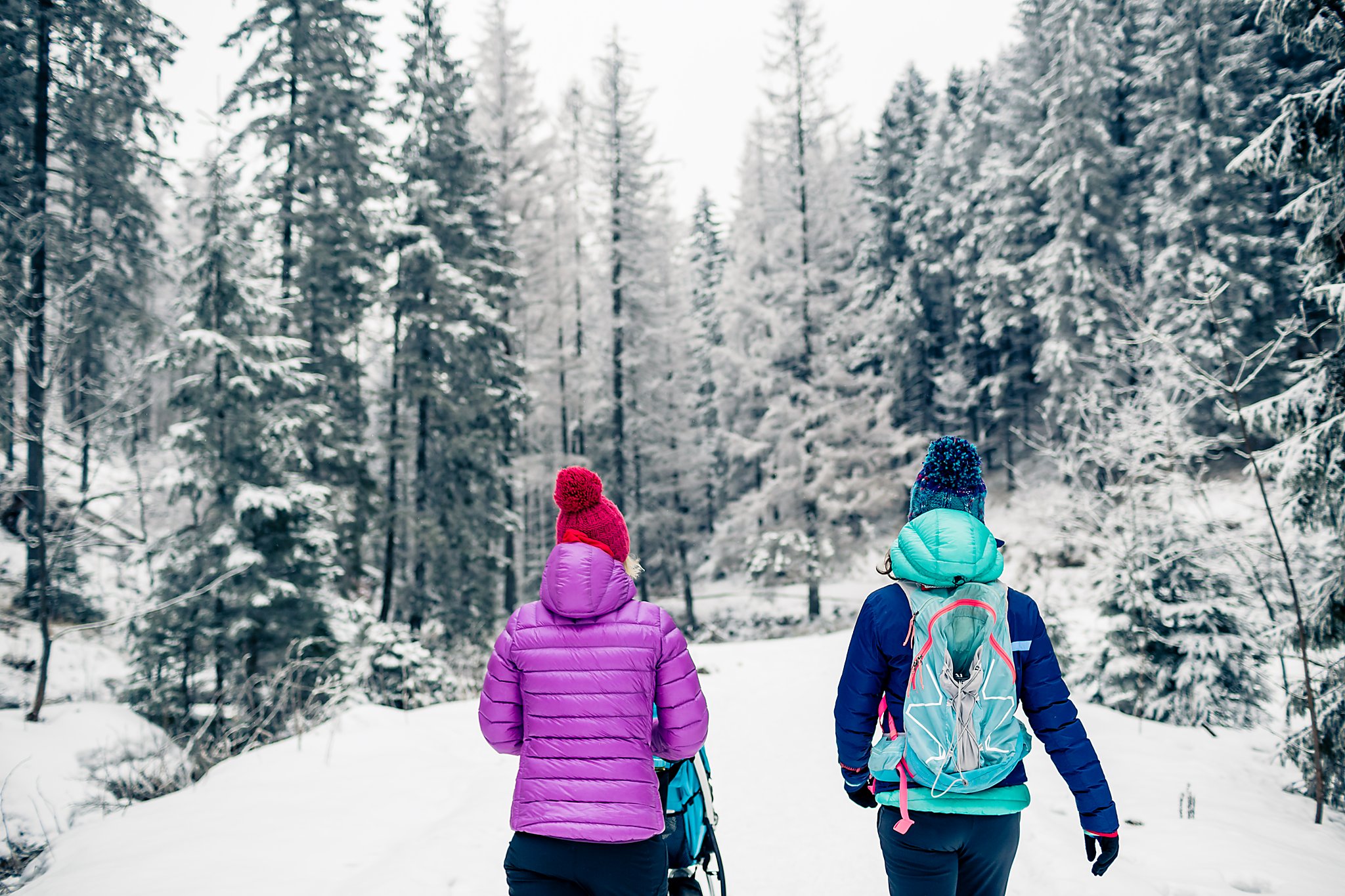 Zimowy trening biegowy w malowniczej scenerii Doliny Małej Łąki w Tatrach. Dwie biegaczki pokonują zaśnieżone szlaki w otoczeniu majestatycznych szczytów, ciesząc się pięknem zimowego krajobrazu i rześkim górskim powietrzem.
